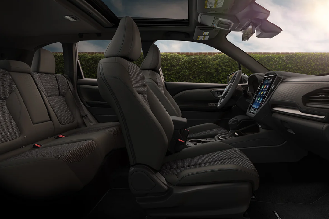Both the 2025 Forester and Honda CR-V feature premium options, including cloth or leather upholstery, but only the Forester comes with water-repellent StarTex® — ideal for adventurers. Shared features include dual-zone climate control, a leather-wrapped steering wheel, heated front seats, and a ten-way power-adjustable driver’s seat. The Forester also provides heated rear outboard seats for winter comfort. Though both are two-row, five-seat SUVs, the Forester offers more headroom and over 43 inches of front legroom compared to over 41 inches in the CR-V.